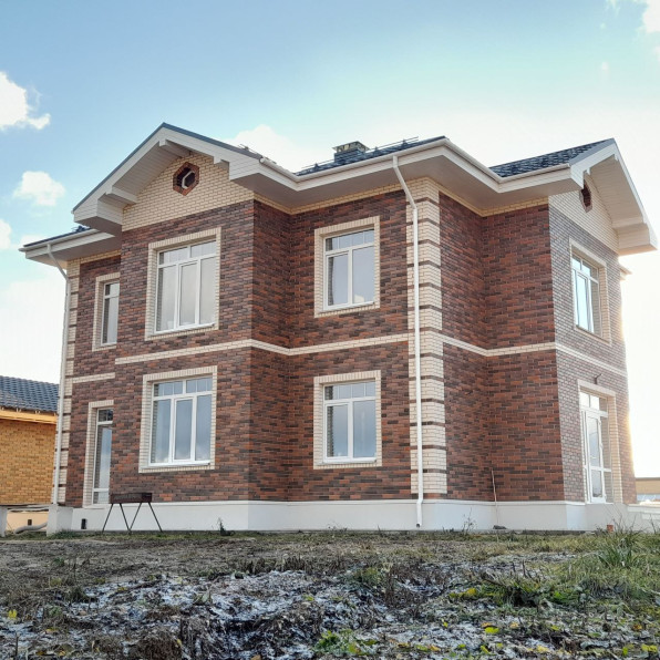 Теплый контур - фундамент монолитная ж.б. плита, стены газобетон, перекрытия ж.б. плиты, облицовка фасада кирпич, кровля металлочерепица, цоколь декоративная штукатурка, ж.б. отмостка, ливневая канализация.